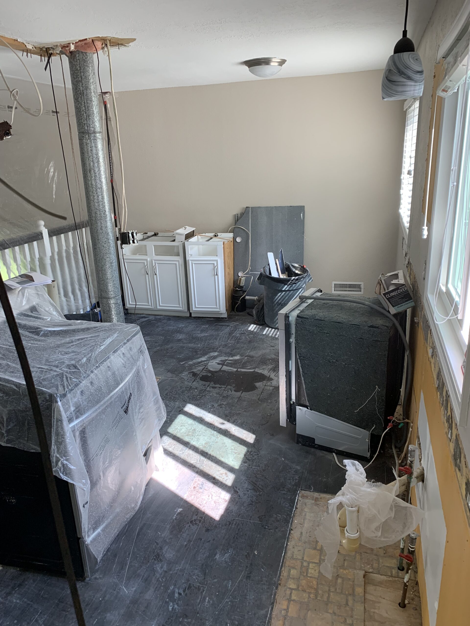 The new kitchen features custom-designed cabinets tailored to our client’s needs, complemented by elegant quartz countertops and top-of-the-line stainless steel appliances. We installed a luxury vinyl plank floor throughout the dining area, kitchen, and walkway, and enhanced the space with sleek matte black hardware and faucet.