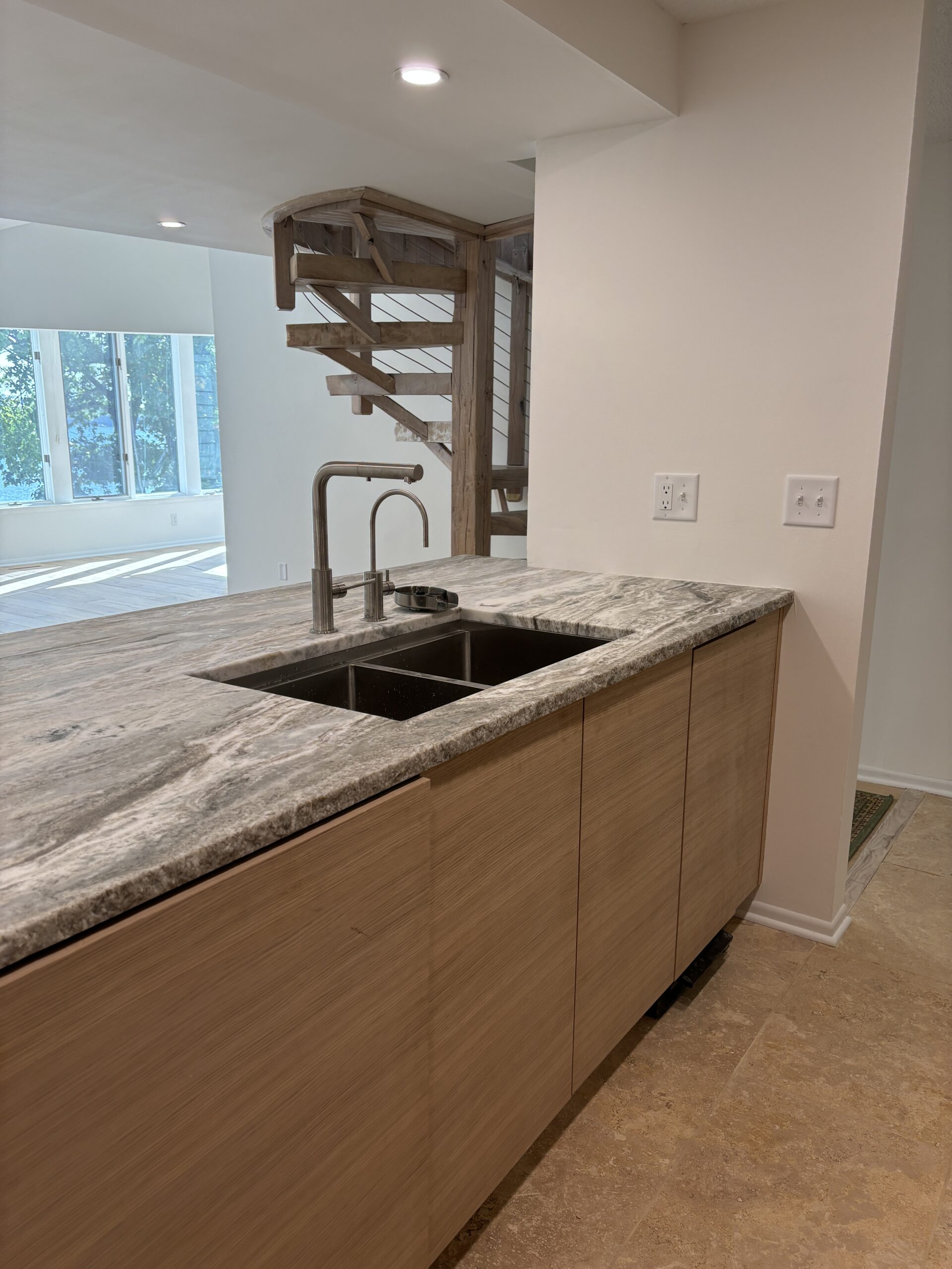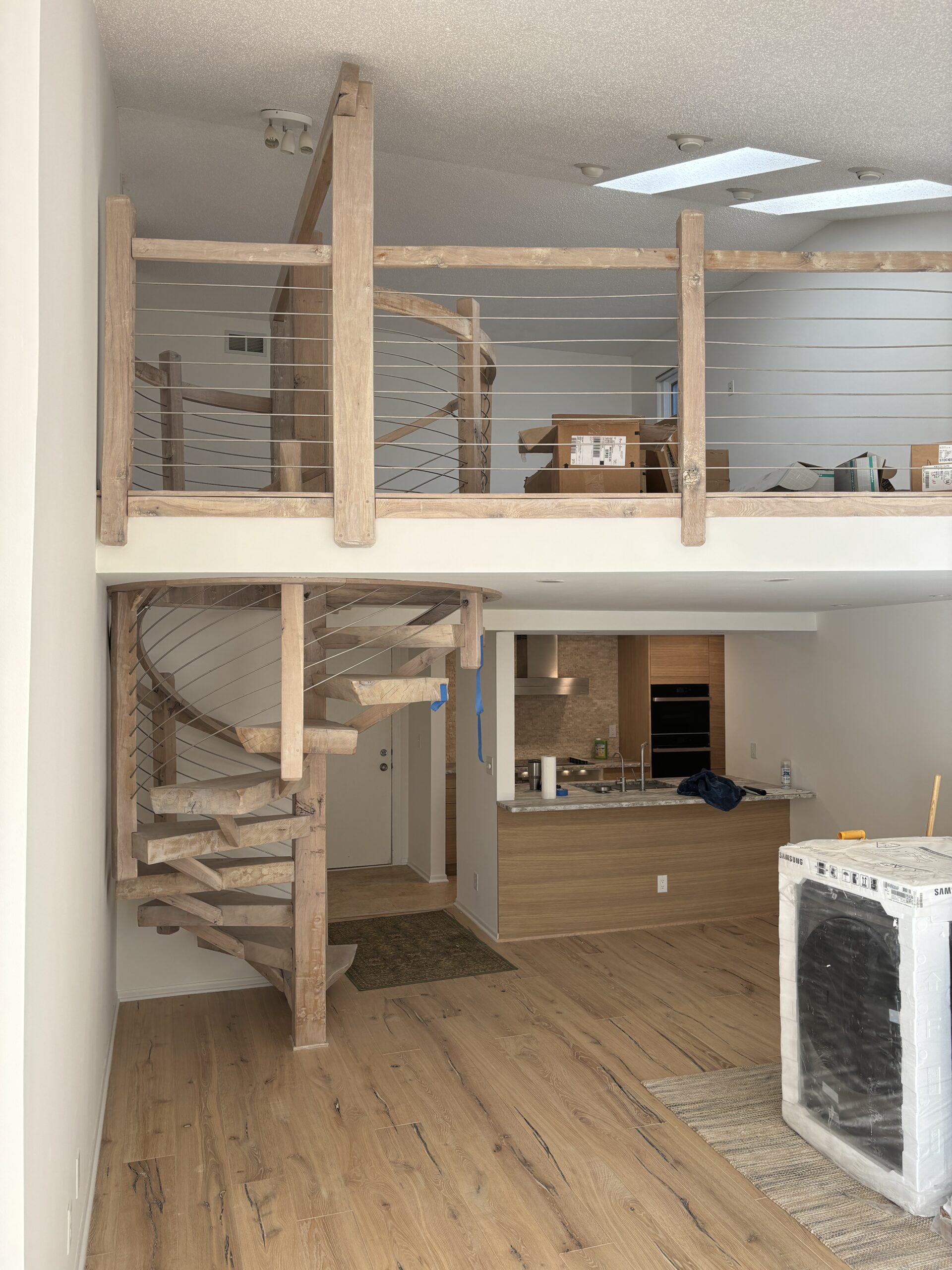 This 1980’s Lakeside Condo now boasts an enviable space with a gorgeous balance of rustic and modern with hygge-inspired charm. Backstrom Remodeling achieved this by blending materials to create a soothing yet dynamic atmosphere. Subtle but high-end finishes were used in everything from the custom spiral staircase that leads to a new loft, the Stuga hardwood flooring with an abstract pattern of a tree’s natural imperfections to the sleek Scandinavian style kitchen and bathroom. The client made well-appointed selections for this space such as a luxury steam shower with rain head, modern commode and a hand-made integrated sink. The spiral staircase and open railing design on the loft add clean, bright, comfortable spaces that complement its breathtaking views from every angle!