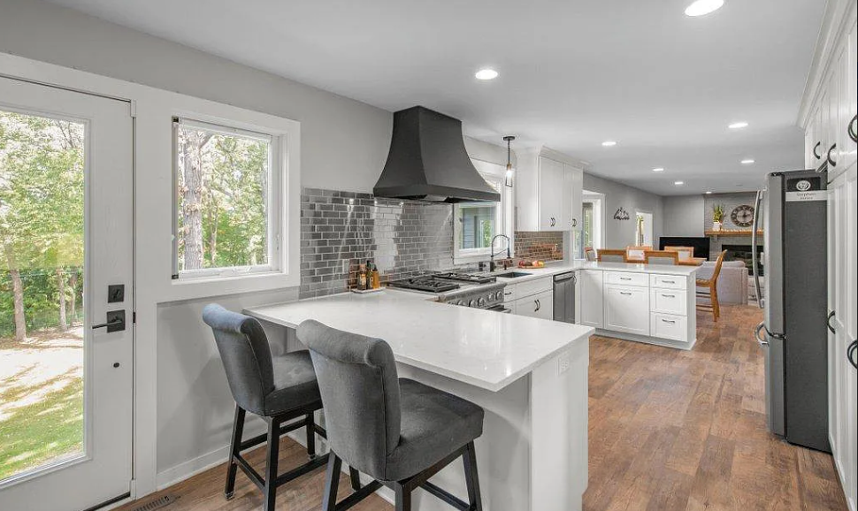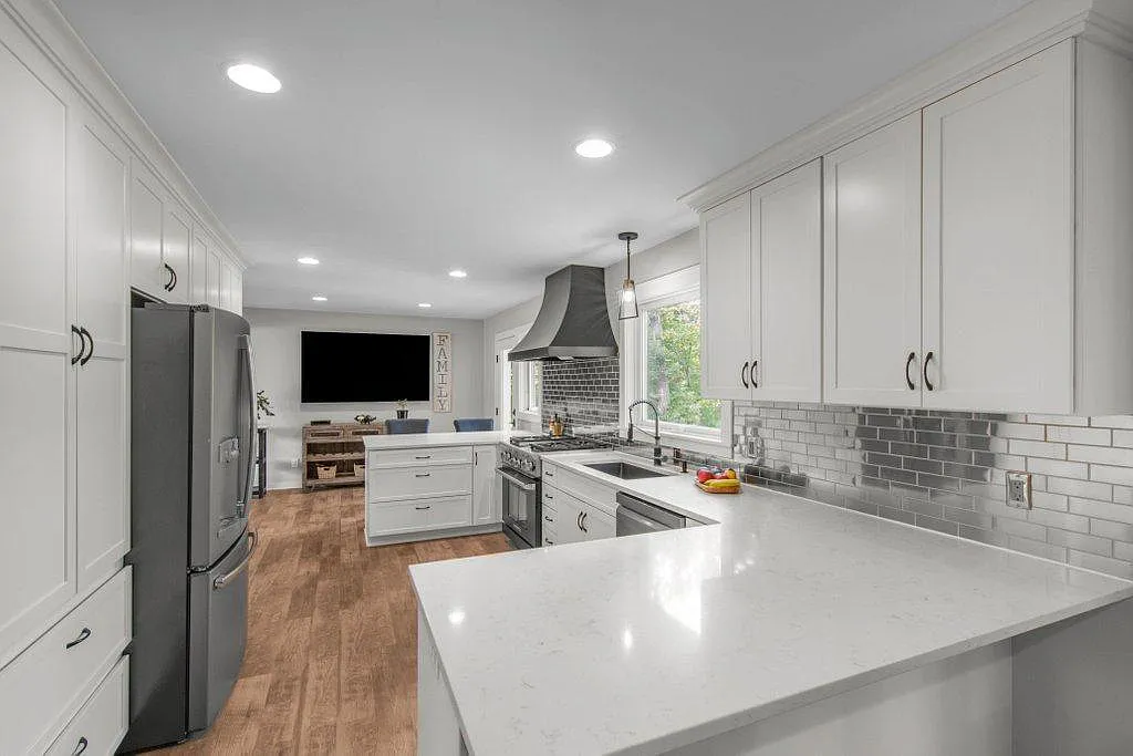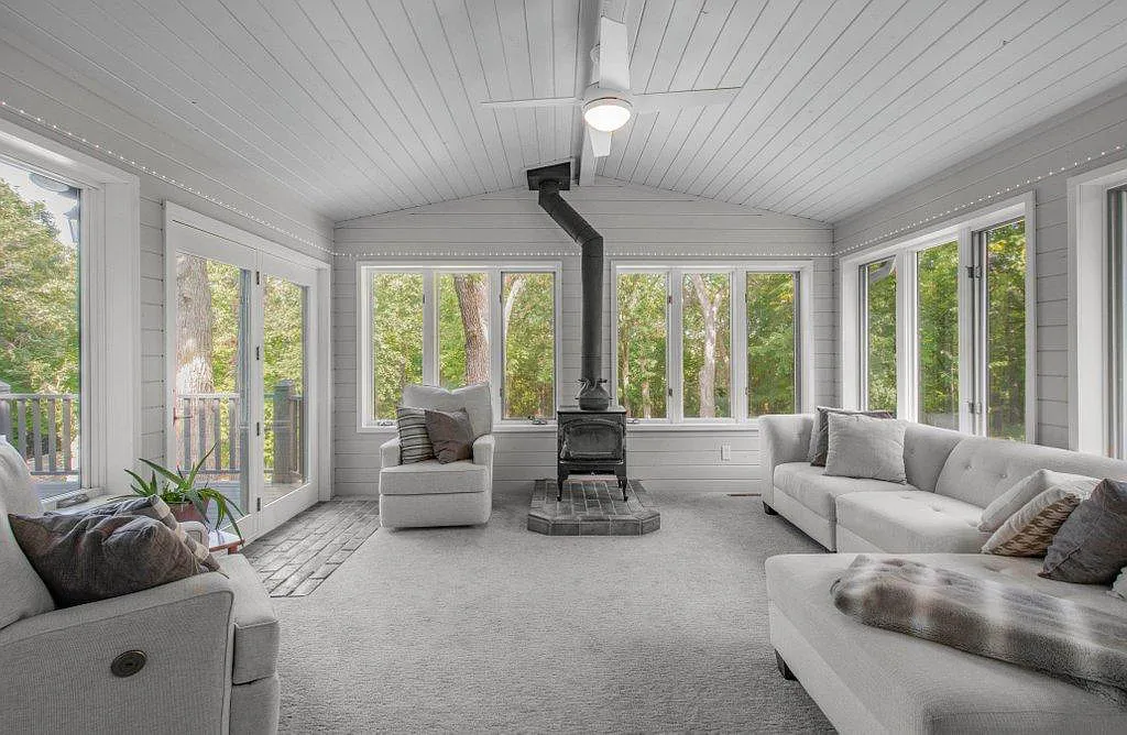 This suburban cottage is nestled into a rolling wooded neighborhood. The family appreciated that their home offered a slice of nature in the heart of a metropolitan area, but the inside of the home lacked the clean, open flow they wished for. In addition to an extensive full first floor remodel which included a brand-new kitchen, moving and relocating walls, family room and 4 season porch with a potbelly fireplace, this client also hired Backstrom Remodeling to complete their mudroom, laundry room, bedrooms and bathrooms to match the new space of their dreams! Now the entire house offers additional function and connected spaces perfect for cozy family get-togethers or entertaining a crowd.